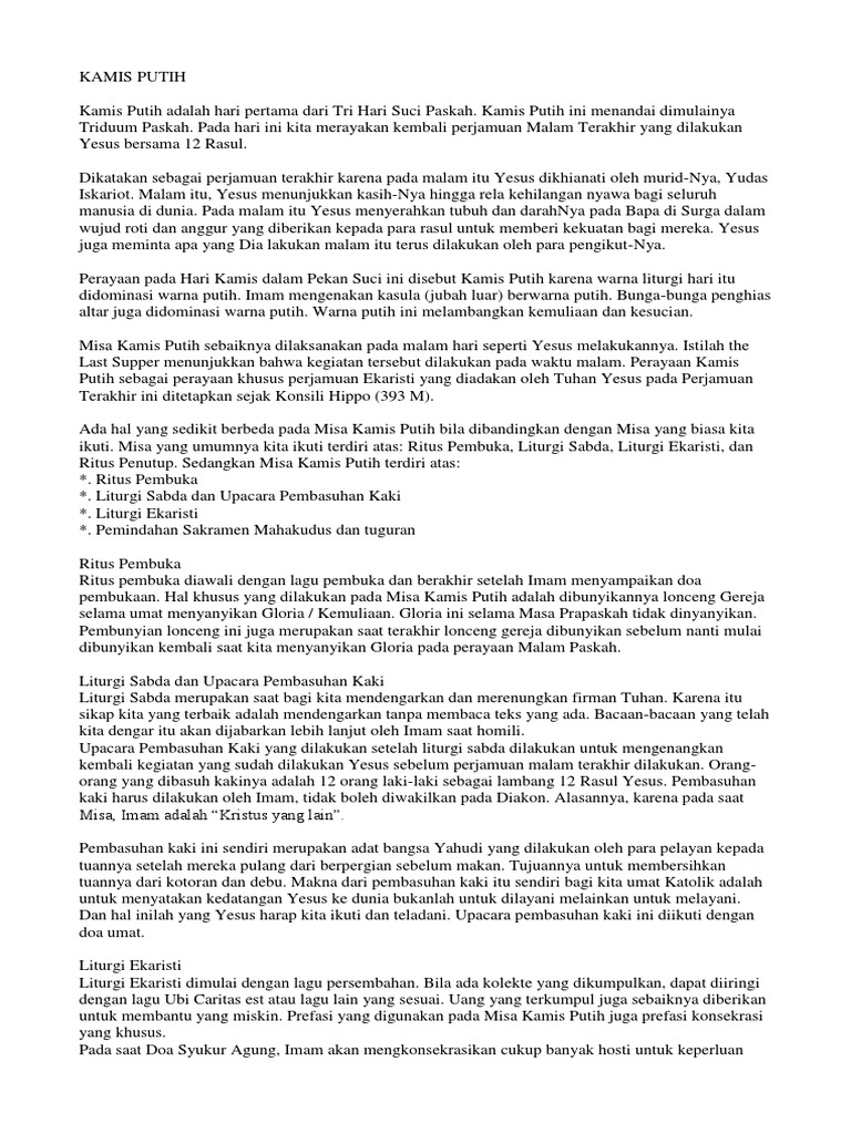 Text Misa Kamis Putih 9 April 2020 Paroki Pulo Gebang Keuskupan Agung Jakarta from www.parokipulogebang.org Karena dalam kalender yahudi modern tanggal 15 nisan tidak pernah jatuh pada hari senin, rabu, atau jumat, seder tanggal 15 nisan tidak pernah jatuh pada malam kamis putih. Seder kedua, yang diperingati oleh sebagian komunitas yahudi sebagai malam paskah (yahudi) kedua, dapat jatuh pada kamis malam.